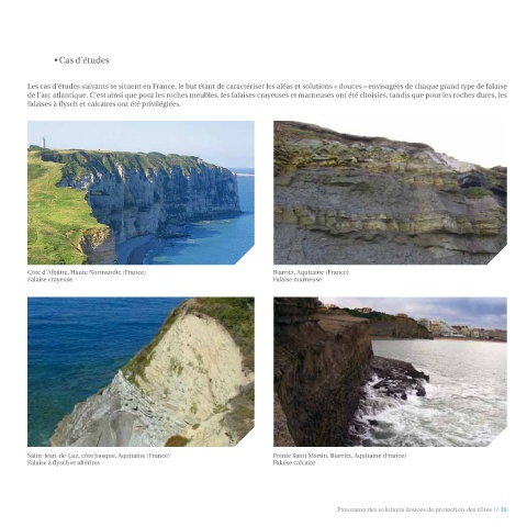 Les cas d’études suivants se situent en France, le but étant de caractériser les aléas et solutions « douces » envisagées de chaque grand type de falaise